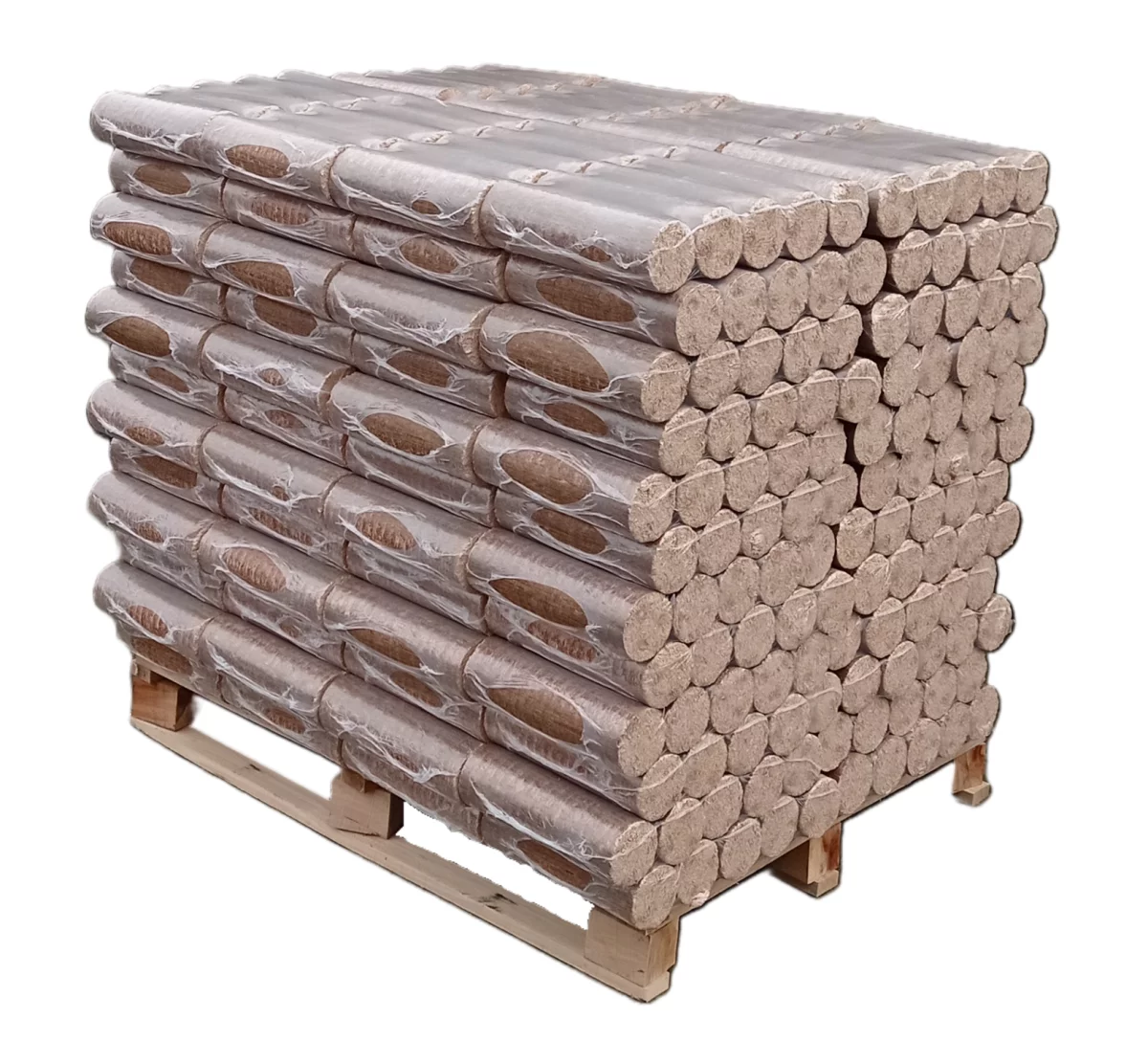 Hartholzbriketts NESTRO/NIELSEN 960 kg aus 100 % hochwertigen Buchenspänen gepresst, ohne Zusatzstoffe, in Schrumpffolie verpackt 96 Pack à 10 kg = 960 kg, Lieferung auf Einwegpalette ohne Pfand.